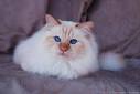 The Birman, also called the "Sacred Cat of Burma", is a domestic cat breed.The Birman is a long-haired, colour-pointed cat distinguished by a silky coat, deep blue eyes, and contrasting white "gloves" or "socks" on each paw. The breed name is derived from Birmanie, the French form of Burma.The Birman breed was first recognized in France by the Cat Club de France in 1925, then in England by the ...