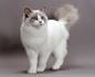 The Ragdoll is a well-balanced cat with no extreme features. They are a medium to large, moderately longhaired, blue-eyed pointed cats. The point markings may be covered by a range of white overlay patterns. Ragdolls are slow maturing, reaching full coat and color at about three years of age.