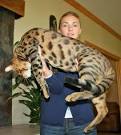 Savannah cats are a spotted domestic cat breed started in the 1980's. Developed to give the impression of grandeur and dignity of a wildcat with a cheetah type appearance, expressive eyes highlighted by dark tear stains, vibrant coat colors, solid contrasting black spots, huge sonar-like ears and long legs.